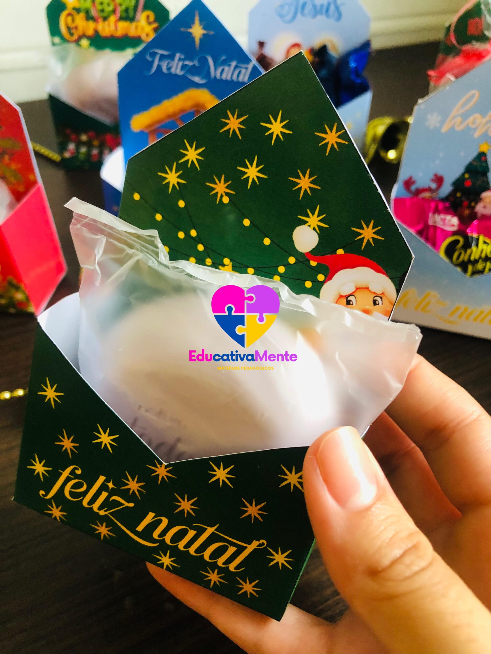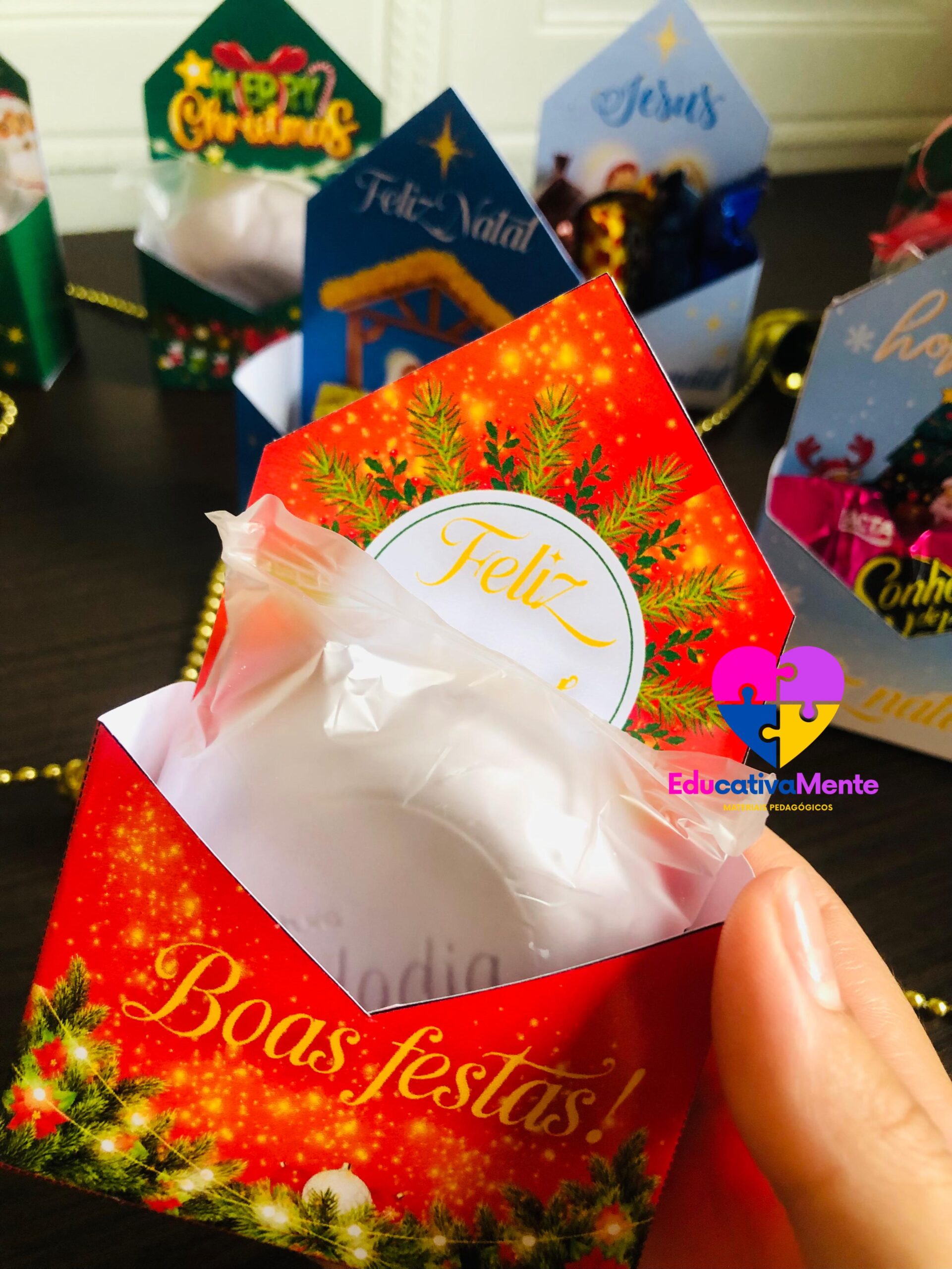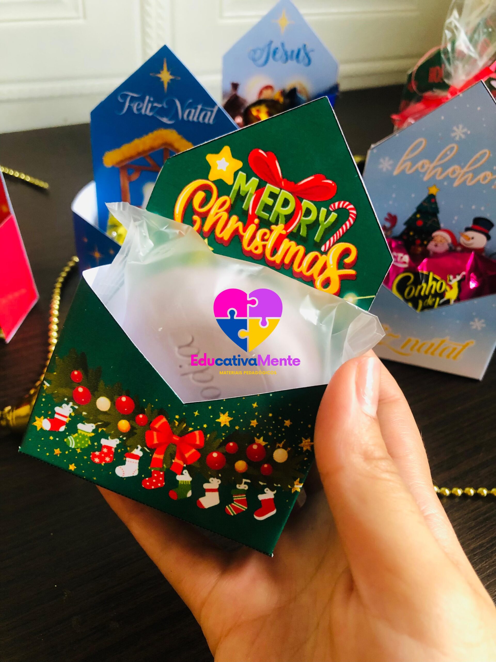 Com nosso PDF exclusivo, você terá acesso a 7 modelos únicos de caixinhas natalinas, incluindo uma versão especial em inglês. Cada página é um convite à criatividade, trazendo moldes prontos para imprimir, recortar e montar sem complicações.