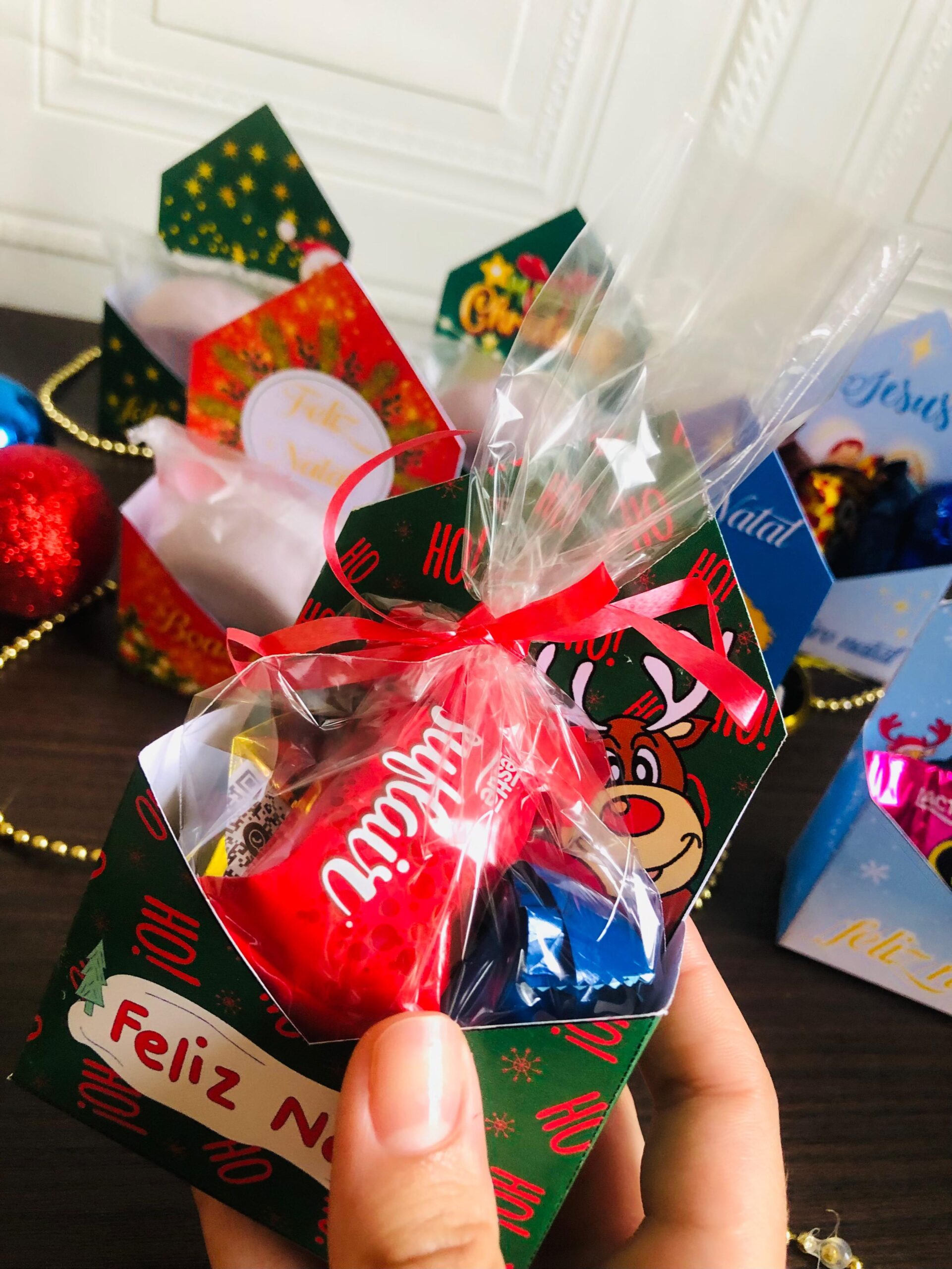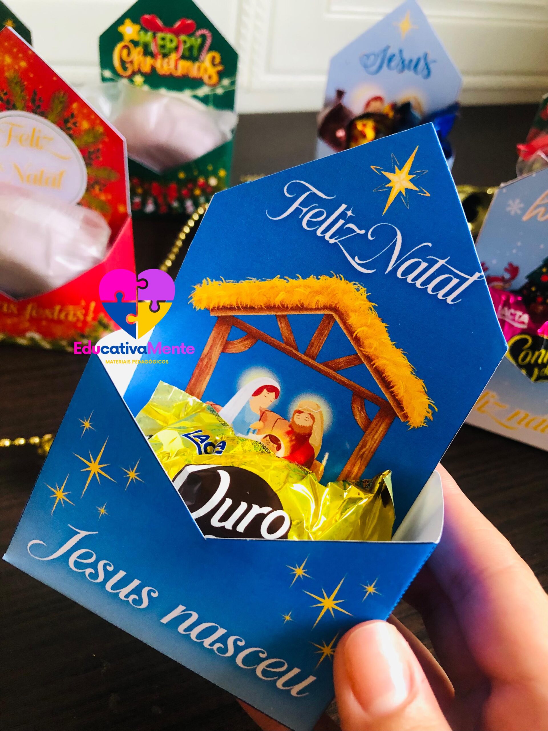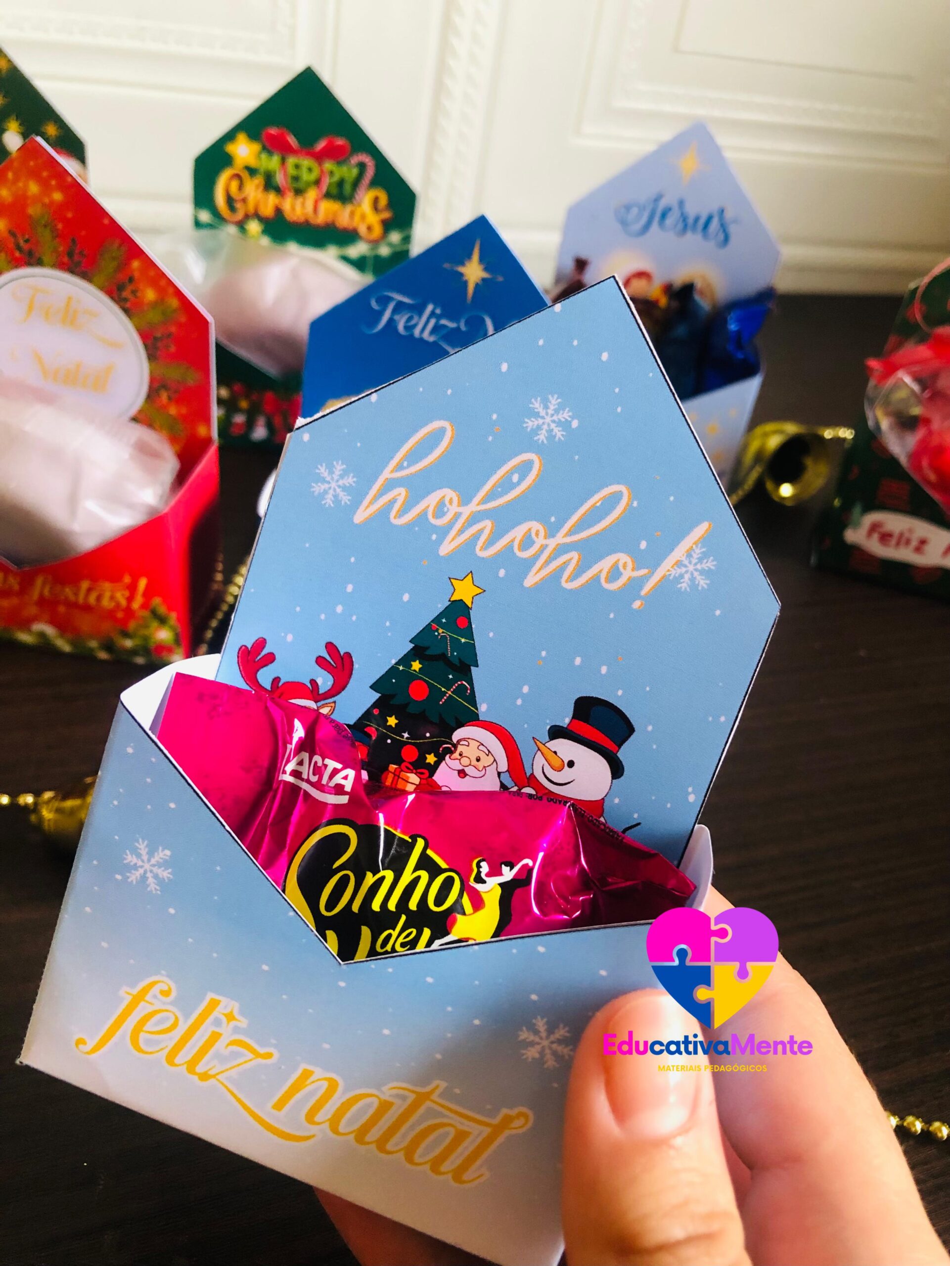Com nosso PDF exclusivo, você terá acesso a 7 modelos únicos de caixinhas natalinas, incluindo uma versão especial em inglês. Cada página é um convite à criatividade, trazendo moldes prontos para imprimir, recortar e montar sem complicações.